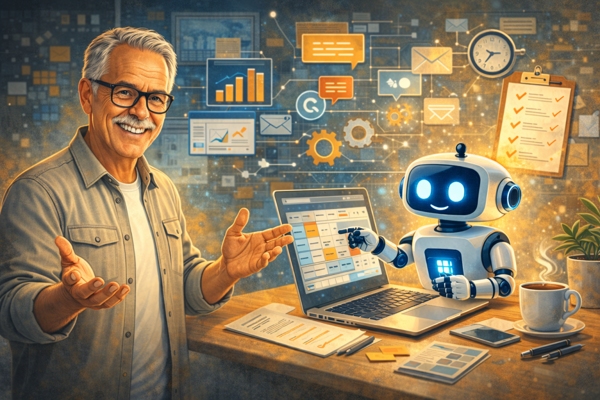 Als zertifizierter KI-Anwendungsberater erkläre ich "Künstliche Intelligenz" praxisnah, mit viel Geduld und verständlich sowie auf Augenhöhe – in Trainings, Workshops oder Einzelcoachings für alle; Anfänger, Unternehmer oder  Interessierte ab 50+.
