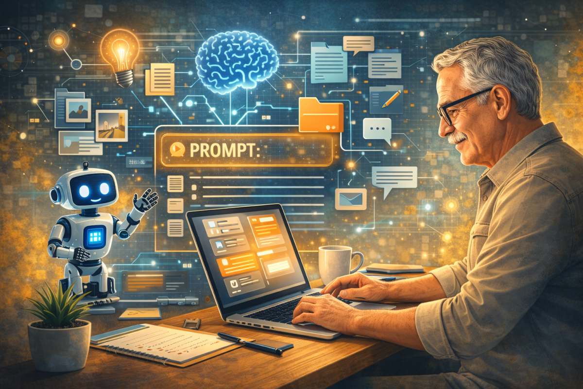 KI muss nicht kompliziert sein Viele Menschen über 50 hören täglich von Künstlicher Intelligenz – doch nur wenige wissen, wie sie sie wirklich für sich nutzen können. Genau dabei unterstütze ich Sie. Als zertifizierter KI-Anwendungsberater zeige ich Ihnen in verständlichen Trainings und Coachings: